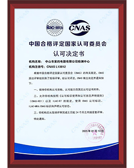 曾經獲得CNAS實驗室證書