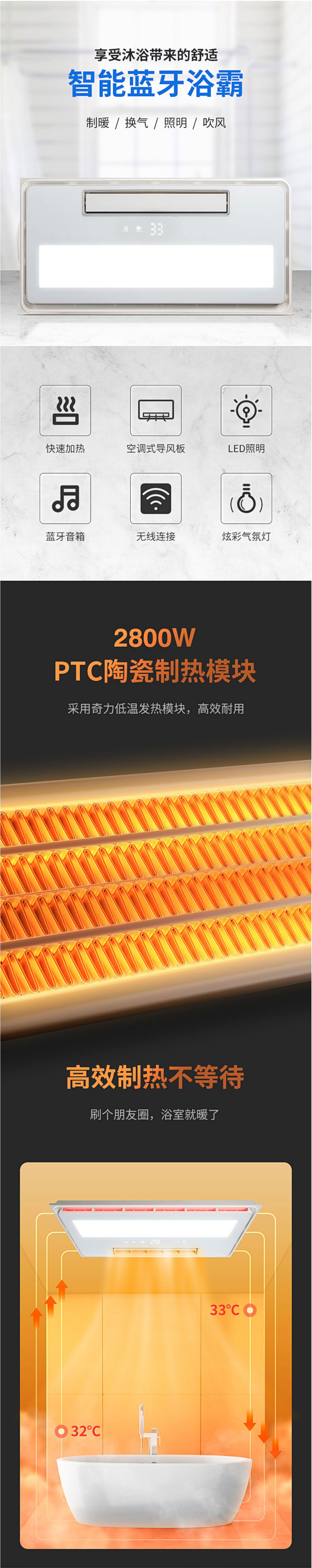 功能模塊:換氣+風(fēng)暖+LED照明+數(shù)顯+有線遙控